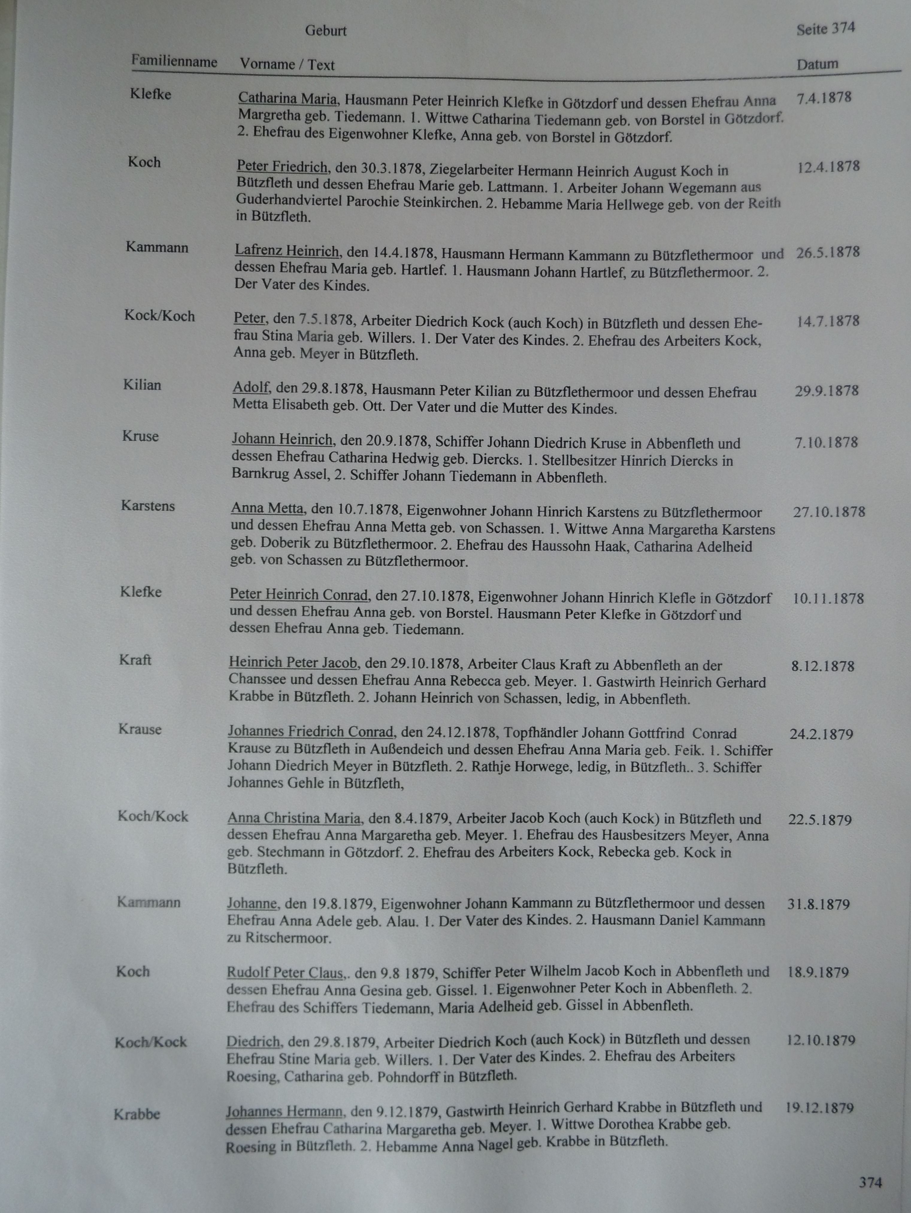 ~ 07.04.1878, Taufpaten: Catharina Tiedemann, geb. von Borstel und Anna Klefke, geb. von Borstel