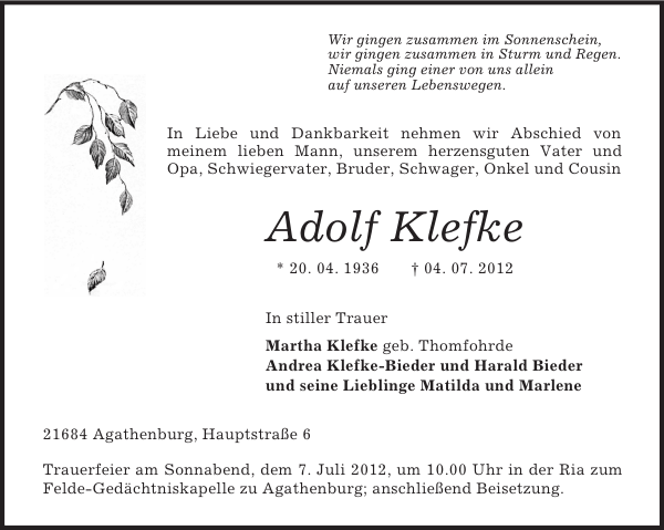 Quelle: Traueranzeige https://m.tageblatt-trauer.de/traueranzeige/adolf-klefke/17897686