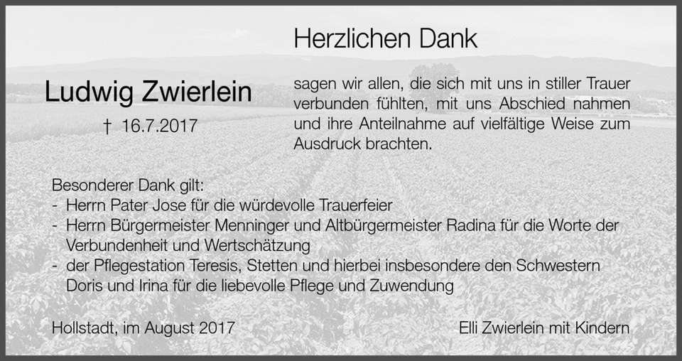 Vater: Adalbert Zwierlein Mutter: Josefa Werner Geschwister: Emma Hermine Ferdinand Christian Hedwig Kinder: Helmut Gerhard Klaus