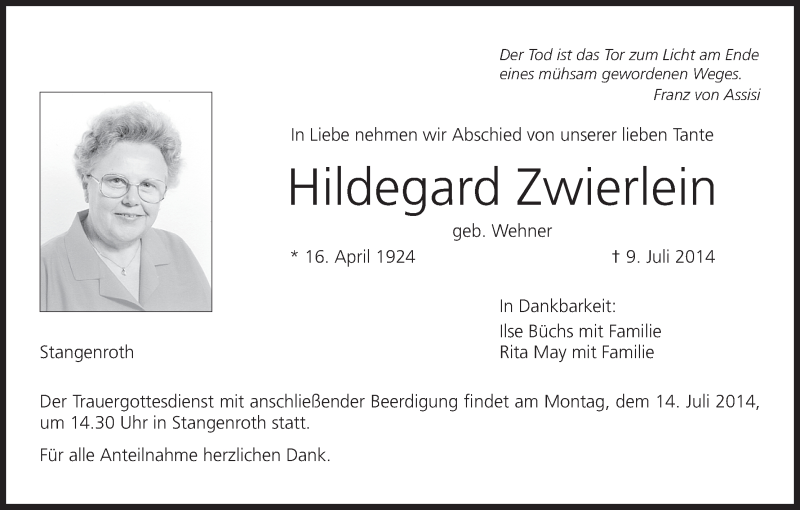 Quelle: Traueranzeige https://trauer.infranken.de/traueranzeige/hildegard-zwierlein