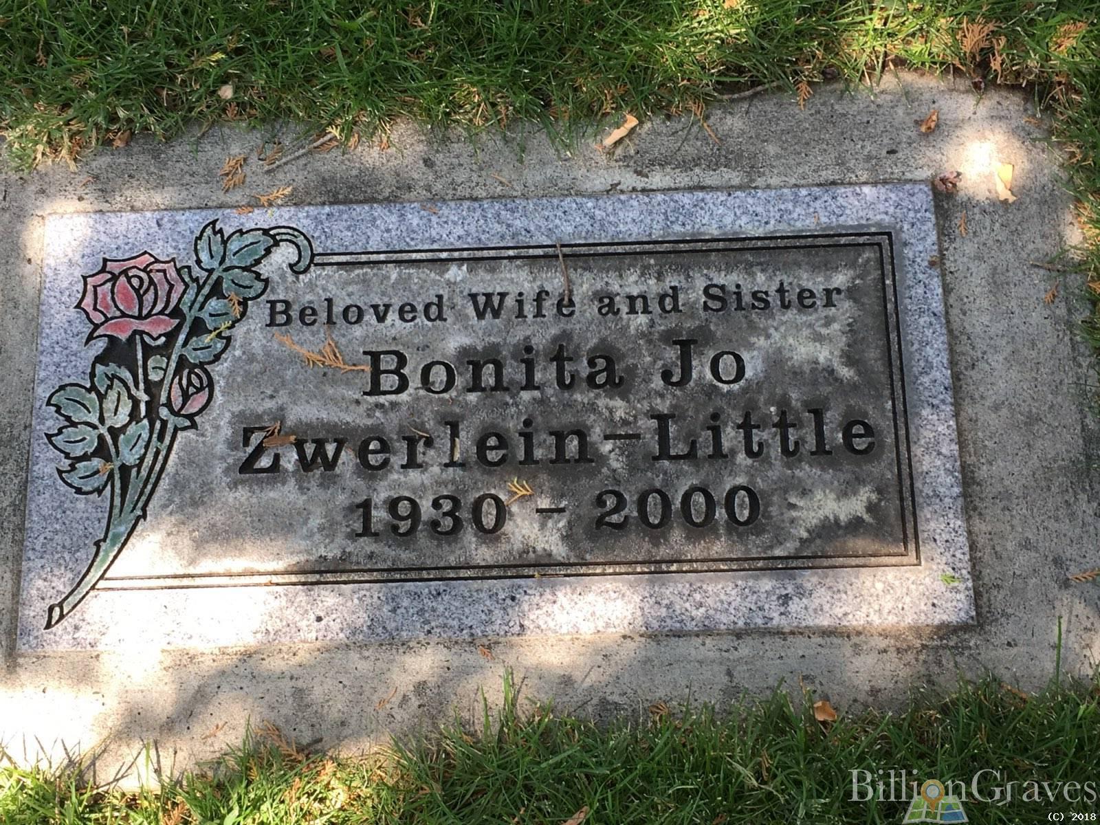 Little, Bonita Jo* 1930+ Independence, Inyo, California, USA 2000Quelle: https://billiongraves.com/grave/Bonita-Jo-Zwerlein-Little/28746534 Erstellt mit dem Programm AHNENBLATT (www.ahnenblatt.de).