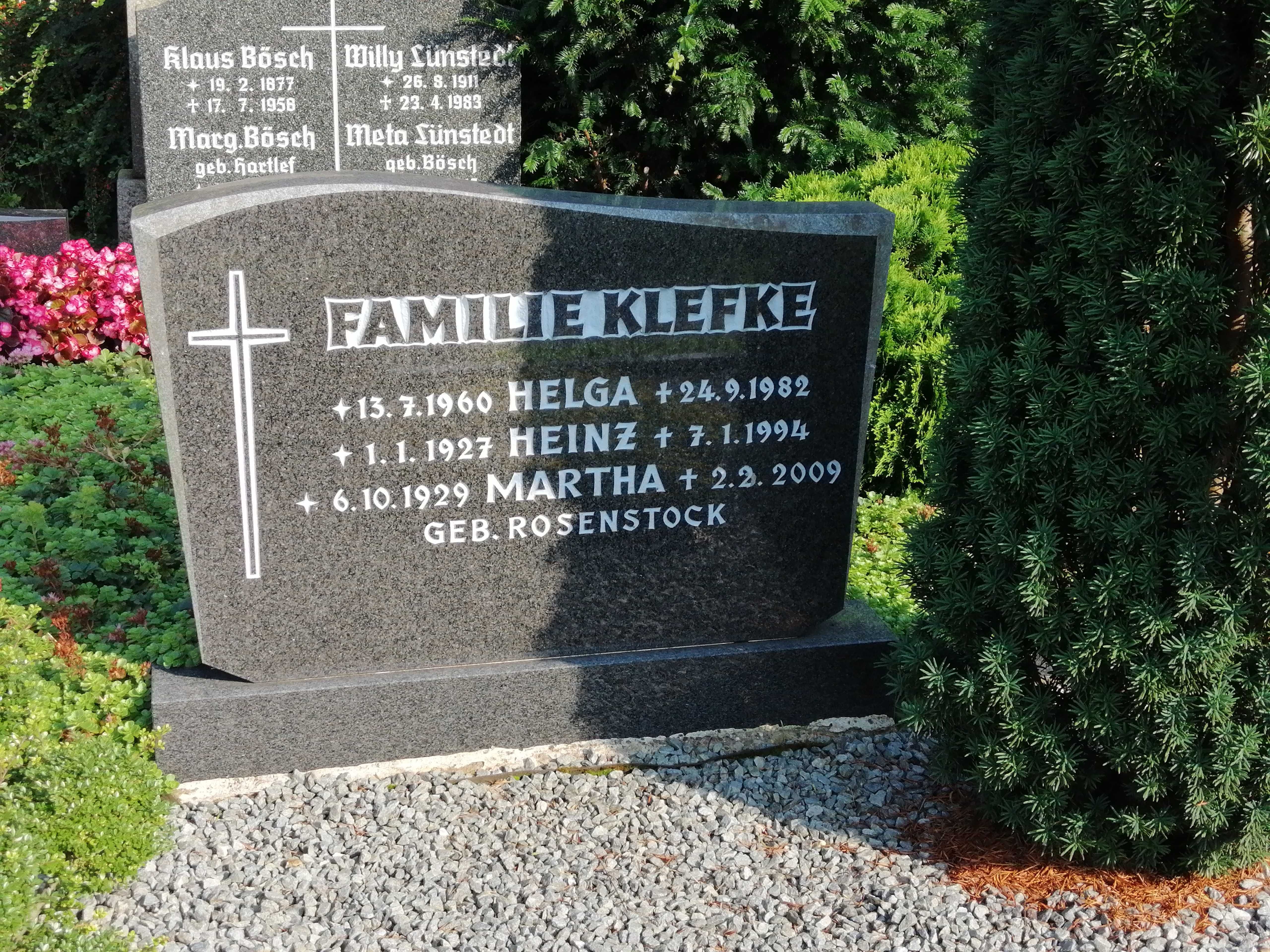 Vater: Heinz Klefke Mutter: Martha Rosenstock Geschwister: Wolfgang Hans-Dieter Rolf Gerhard